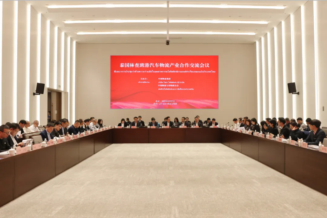 2月27日,泰国林查班港汽车物流产业交流座谈会在中国物流总部召开。中国物流党委常委、副总经理李向阳出席会议并致辞。best365足球彩票官网党委副书记、董事、总经理孙珂,中国物流与采购联合会汽车物流分会副秘书长冯拓,泰国海关总署副署长迪雷克·卡查拉克等泰方官员,泰国纳塔林集团主席撤初·班本洪,泰国环球国际公司董事长塔那功·喃提以及一汽、长安、广汽、比亚迪、吉利、奇瑞、东风、北汽股份、北汽福田、中都物流、上汽、长城、小鹏、小米、长久物流等15家企业代表参加会议。会议围绕中泰汽车物流产业合作共建模式展开深入交流。